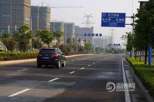 记者观察发现,龙江路周边有万达广场、龙湾行政审批中心、龙湾实验小学、龙湾金融中心、在建的温州奥体中心等,并规划多个大型住宅区。随后,记者以正常的速度行驶,粗略计算了一下,通过该路段大约需三到四分钟。