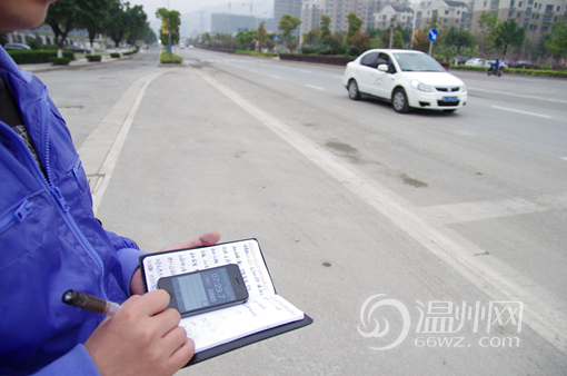 3月27日下午17时30分,龙江路,记者现场统计车流情况 王建平 摄