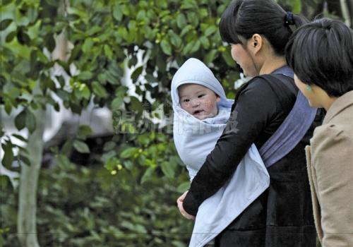 昨天,市区中山公园内风大,一小孩被大人抱在手中,包裹得严严实实。 见习记者 黄攀/摄