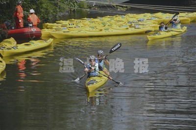 首日比赛,竞赛里程约54公里,预计最快用时约260分钟。为何耗时如此之久?大赛副总裁判长倪斌介绍说,首个项目轮滑过后,运动员从郭公桥开始下水,换皮划艇,途经塘河、三垟湿地至仙岩,这一段水域最短距离为20多公里。与以往用红丝带标出线路不同,今年比赛加大了考验运动员户外定向能力。首日皮划艇就是一个大定向——“三垟湿地水网密布,运动员每人一张地图,需要结合指北针,自由选择划行线路,但到达指定目标必须打定向点,如果打点不够,要被罚时,如果打点成功,必然耗时很多,也就是说,最后第一个冲过终点的队伍,未必是当日第一名。”倪斌说。