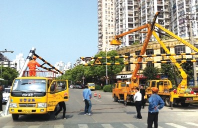 江滨西路与车站大道交叉口 限高门安装不到两天被撞