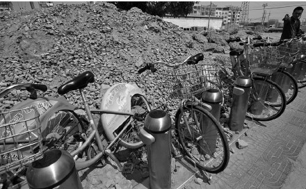 南湖路施工公共自行车租赁点遭埋 要租车先挖出来