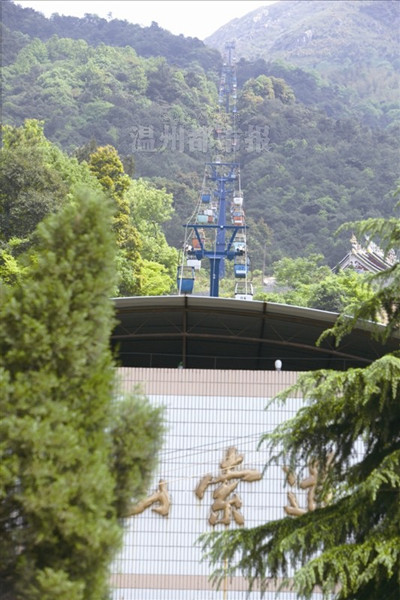 瓯海区吹台山索道建成于1998年,设9座支架、74个双人吊篮,上下站高差约360米。