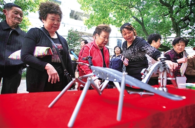 大学生利用废弃物制作的机器人让人们好奇不已。陈翔 摄