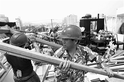 昨天,鹿城区城管与执法局水心中队组织人员对市区锦花路46号8楼楼顶两处轧钢结构违建进行拆除。今年以来,鹿城区专门抽调熟悉规划业务的队员,加入社区网格化管理中,利用摄影器材对社区的建筑物进行整体多角度拍摄,全面细致排查违建,以强有力的措施推进“无违建社区”创建工作。苏巧将王荣摄