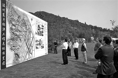 中国工程院院士王浩、曲久辉等专家学者在现在查看温州治水工程。徐慧敏摄