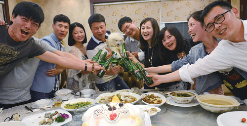 吹蜡烛、敬酒寒暄后,朋友们的话匣子也打开了。对于以狗狗满两月为名义的这次酒席是否一定要狗狗当主角,李先生坦言,酒席的规格在1500元左右,狗狗满月也只是个由头,目的是让哥儿们几个好好聚聚,更何况大家都挺喜欢“格森”的,并不是对宠物一无所知。“我们有个吃货群,里头都是要好的朋友同事,平时要想人马到齐很难得。”