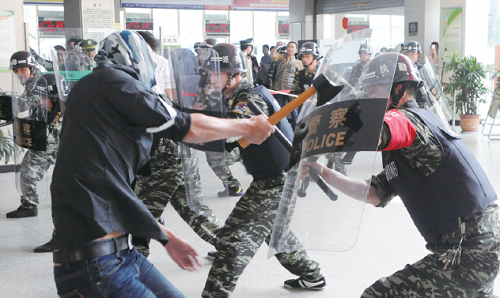 反恐防暴演习:4“暴徒”持械砍人 不到1分钟被制服
