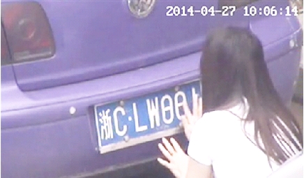 4月27日10时5分许,在市区建设中路与建虹路交叉口一辆违停的大众轿车旁,一名女驾驶员正在用双面胶修改车牌。这一幕被乐清市交警大队科技中队工作人员在视频监控中发现,并记录下车主变改号牌的全过程同时上报122指挥中心。15分钟后,市区交警中队工作人员赶到现场当场将该车查扣。