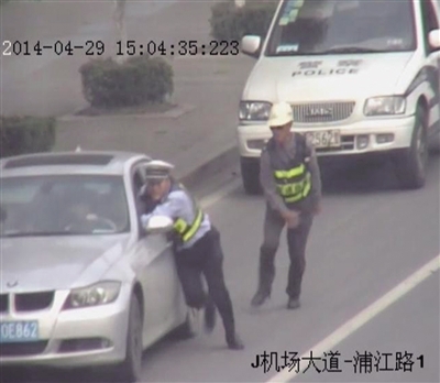 他拖着交警开出近200米