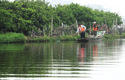 “由于河岸经常冲刷,有的农民就借机围驳岸,外面的保洁队也往这里倒垃圾。”生态园水利局局长洪寿海透露,三垟湿地共161个岛、175条河道,两岸驳坎共180公里,已经建设生态驳坎35公里,有村民利用垃圾填河围栏侵占河道,表面是垃圾填河行为,根源要在岸上保洁管理和执法监管下功夫。今年,生态园将大力推进重点部位的驳坎建设,计划投入资金1500万元、推进15至18公里驳坎建设,并将开展生态修复,彻底解决失地河岸冲刷倒塌问题。据悉,下一步,除配备河道警长、全面推行“河长制”外,生态园还将加强巡查监管,并与有关部门衔接打通体制,为湿地多头管理的体制难题找“解药”。