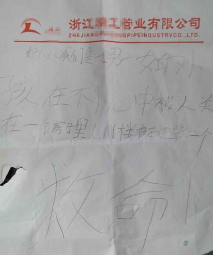 温州网讯 “好心人,我们是一男一女的小孩,在不小心中被人关在一个房子里(11楼右边第二个)救命!”这是谢某在上月28日执勤过程中,捡到的一张纸笺。纸笺上的字歪歪斜斜,很像小孩子的笔迹。最后用大字写的“救命”两字让人看到吓了一跳:难道是有人绑架、拐卖小孩?