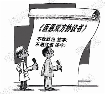 今年2月国家卫计委发文要求, 5月1日起患者住进二级以上医院24小时之内,要签署一份《医患双方不收和不送“红包”协议书》,医患双方需书面承诺不收、不送红包。日前我市卫生部门出台实施细则,二级以上医疗机构需与卫生部门签署《医疗卫生行风建设“九不准”》及治理红包责任书。