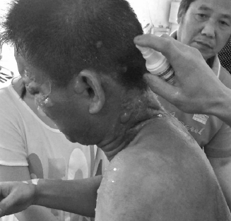 程某痛得站都站不起来,他的岳父岳母赶紧向瓯海公安分局经济开发区派出所报案。随后,程某被送至解放军118医院治疗。医生检查后告诉老师伯,程某头部、前胸后背、左右手分别有不同程度的烫伤,烫伤面积达18%。