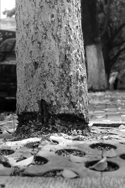行道树根部被剥皮 究竟是谁下狠手?