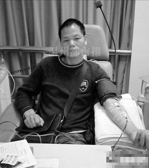 吴华文正在献血。