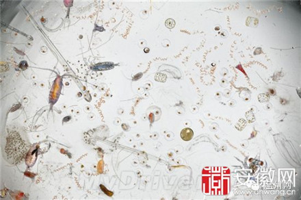 摄影师David Littschwager将一滴海水放大25倍后拍摄了下面这张照片:小螃蟹,硅藻,鱼卵,小蠕虫……