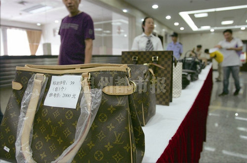 那次拍卖,从司法机关移交过来的物品林林总总:虫草,部分发霉的;茅台17瓶,有一瓶是上世纪八十年代的陈年茅台;22个名牌包,其中12个包的牌子是LV;北京奥运火炬;范增字画,经鉴定是仿冒的;齐白石幼子齐良末画虾的画,画上有“国森正”字样;还有钻石、金条、小象牙制品等,总共114项拍品。