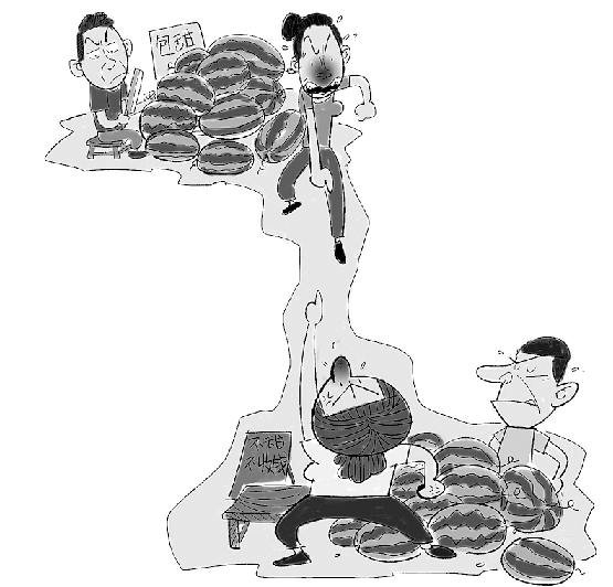 兄弟相隔10米摆摊卖西瓜 因生意闹矛盾竟大打出手