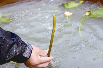部分水缸里,荷叶尚在,花苞却已不见,留下被折断的花茎。蒋文广 摄