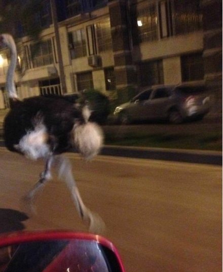 5月13日凌晨,北京朝阳北辰福第小区附近,一只鸵鸟在街上大步流星地奔跑,并超越了路上多辆汽车。潇洒的姿态吸引路人纷纷驻足围观。警车在后方追赶,以防鸵鸟影响交通。
