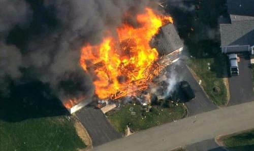 这场火灾发生在一个家庭纠纷之后,86岁的房主沃尔特-诺兰和儿子发生了激烈的争吵。在听到枪声之后,隔壁居民报了案。警察在下午5点之前赶到事发现场,这时当地电视台的直升飞机也及时赶到,为人们现场报道这场事故。在大火燃烧了15分钟之后,发生了爆炸。虽然消防人员尽力救火,但最终这座二层小楼被烧成了平地。