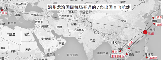 温州网讯(金道汉整理)2012年8月20日,一架波音飞机满载着180名游客,从温州飞往韩国济州。这是温州市正式开通的首条国际航线。随后的一年多时间里,温州相继开通了济州、首尔、曼谷、岘港、长滩、罗马、暹粒等7条国际航线。这一切似乎都预示着温州民航的“国际时代”越来越近,在家门口打上国际“飞的”不再是梦想。