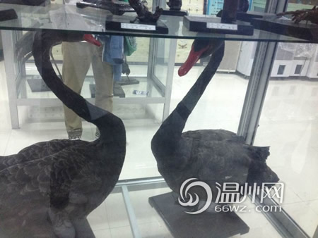 从澳大利亚引进的黑天鹅,共买进四只,其中一只调皮的天鹅君飞走了,另外两只受伤无法救治便制成了标本。(实习生 尤聪聪)