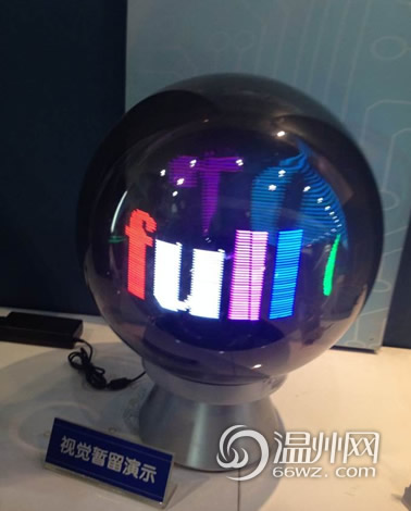 视觉暂留演示:玻璃球内有一排小灯,在不同的位置有不同的亮法。通电后小灯快速旋转。据现场老师讲解,物体在快速运动时,当人眼所看到的影像消失后,人眼仍能继续保留影像0.1~0.4秒左右。因此,我们便可以看到玻璃球上不同的图像。