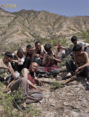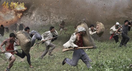 一个有趣的场景是,当赵传奇和他的乡亲们带着乡亲们冲向敌军的汽车时。画面中,赵传奇,孙二娃等不少乡亲们,都留起了今天流行的子弹头等时尚发型,穿着红肚兜,这样喜感十足的服装造型真是令人笑喷。