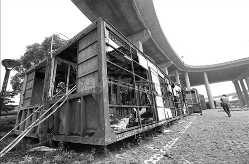 十余件大型游乐设施堆放在江心西园停车公园内8年无人理,不少游乐设施已经破旧不堪。