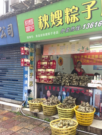 县前头的秋嫂粽子店,原开在华盖山隧道口,是一家经营了二十多年的粽子老店。她家的粽子糯香肉多,包扎结实,凭借多年的诚信经营和较好的口碑,小店在老城区一带积累了不少人气。