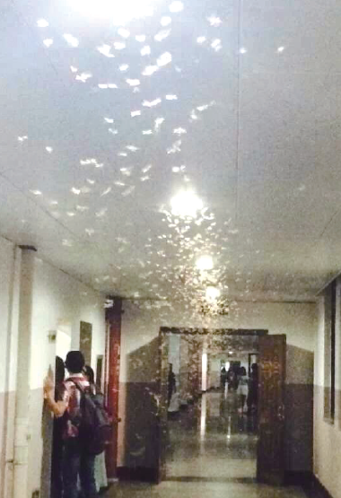 白蚁聚集在温州医科大学一自修教室内,看起来像“飞蛾”。 图片由小董提供