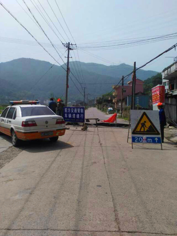 瓯海路政提醒过往车辆在涵洞应急修复期间提前绕道通行并注意安全。