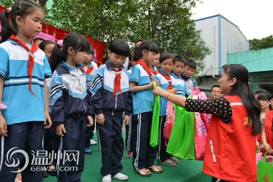 此次慰问活动不仅向瓯海新瓯学校的30名贫困农民工子女送上了书包、衣物、学习用品等,鼓励孩子们怀抱感恩之心,发奋学习,健康快乐成长。同时,还给瓯海新瓯学校1365名学生每人发放了一份学习用品的“六一”节礼物,祝愿大家节日快乐。