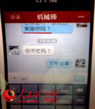 两人的对话比较暧昧。其中包含“要不要我去陪你”等字眼。