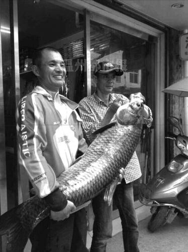 苍南两男子钓到重46斤的青鱼 被鱼遛了一夜