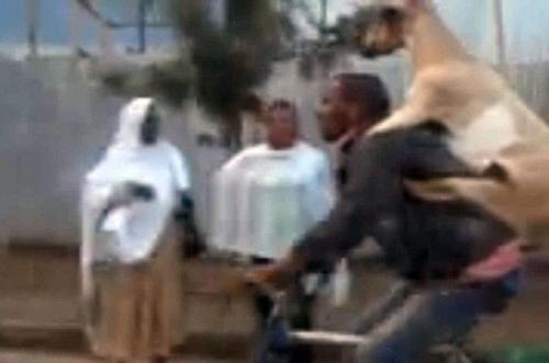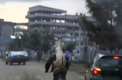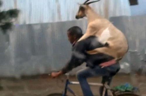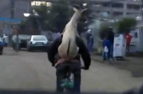 非洲山羊“骑”主人过街 表情非常轻松自然(图)