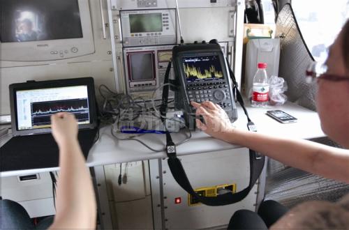 工作人员用测向仪对可疑电波进行监测。记者 黄云峰/摄
