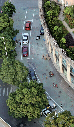 龙腾大厦一名姓蔡的业主反映,新施划9个车位,不仅没有解决车位不够的困难,而且使这边的停车更乱了。以前,大厦门口的人行道可以停两排车子,但现在人行道中间占了9个停车位,其他车辆在周边见缝插针,横七竖八地停着,挤在了一块。
