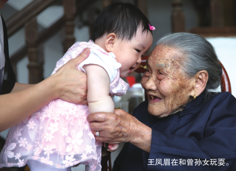 王凤眉育有一儿一女,老伴已过世,五代同堂其乐融融。不过十余年来,家人一直有个遗憾,就是老人实际百岁,户口簿上的年龄却未过百。