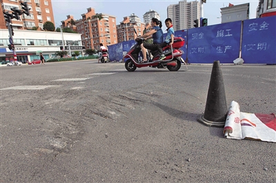 温州网讯 昨日,有温州市民打进“党报热线”,称温州市区新蒲路与汤家桥北路的交界处出现了一个凹坑,过往车辆经常受伤。记者调查发现,该凹坑和半年前在同一个十字路口出现的凹坑有着类似的成因。