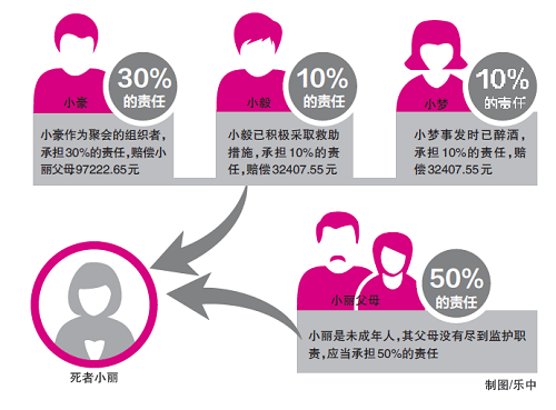 经过细分后,法院就小丽意外溺亡的责任区分如下: