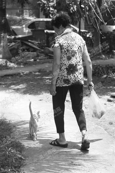林阿婆今年67岁,与丈夫两人居住在八十来平米的房子里,一起居住的还有三只小狗。“猫咪们都是自己跟过来的,有时就在阳台上玩耍,我没有圈养它们。常来的有十八只,没有更多的了。”林阿婆说,自己倒不是真心喜欢猫狗,仅仅是看着它们可怜,不忍心它们挨饿,于是给它们烧点吃的。渐渐地,小区里的一些猫咪都和阿婆熟悉起来,她甚至能数得出每一只小猫的特征来。林阿婆走在小区里,一路上总会跟过来好几只小猫。