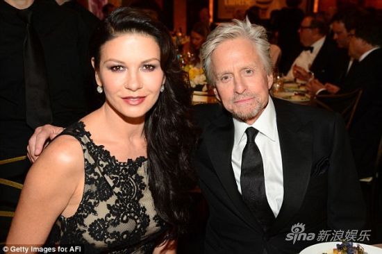 在上周的第42届AFI终身成就奖颁奖典礼上,道格拉斯与泽塔-琼斯携手出席,为他们的好友简-芳达一起分享荣誉。两人一起牵手走上红毯,并四目对视,被视为两人关系缓和的征兆。