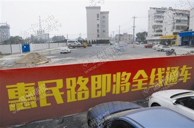 “这个围栏上的标语清楚地写着惠民路北段即将通车,应该不会有错吧?”昨天上午,在刘先生的指引下,记者来到江滨路惠民路北段路口,看到围在路口的红色围栏上确实写了几个大字:“惠民路即将全线通车”。