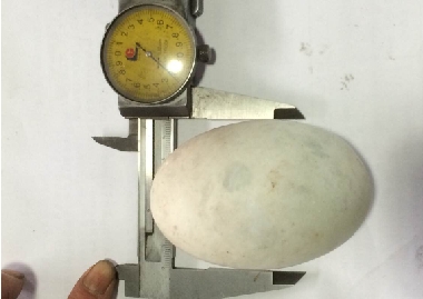 这个鸭蛋除了个头大,颜色淡绿,外形和其他鸭蛋并无区别。经过测量,该鸭蛋长10厘米,宽6.8厘米。