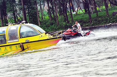 摄影记者拍下了塘河上飞驰而过、四处游玩的摩托艇。