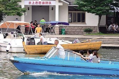 南塘风貌区及庄头滨水公园附近的一处码头,成了私家汽艇聚集区。一些大马力的汽艇和水上摩托经常在这一带狂飙,严重威胁水上交通安全。