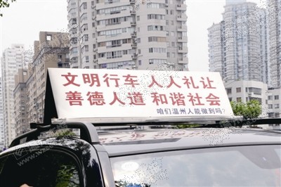 澳籍华人奔驰车顶装“标语” 劝温州司机文明开车